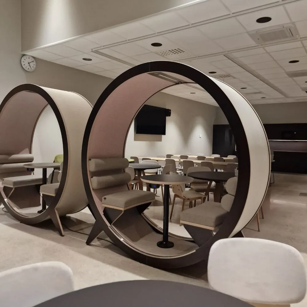 BlockO Two on kahdelle hengelle suunniteltu akustinen vetäytymistila, joka tarjoaa suojaisan ja mukavan ympäristön lyhyille palavereille, videokeskusteluille tai hiljaiseen työskentelyyn. Se sopii täydellisesti avotoimistoihin, yhteiskäyttötiloihin ja julkisiin tiloihin, joissa tarvitaan tilapäistä yksityisyyttä ilman kiinteitä muutoksia.