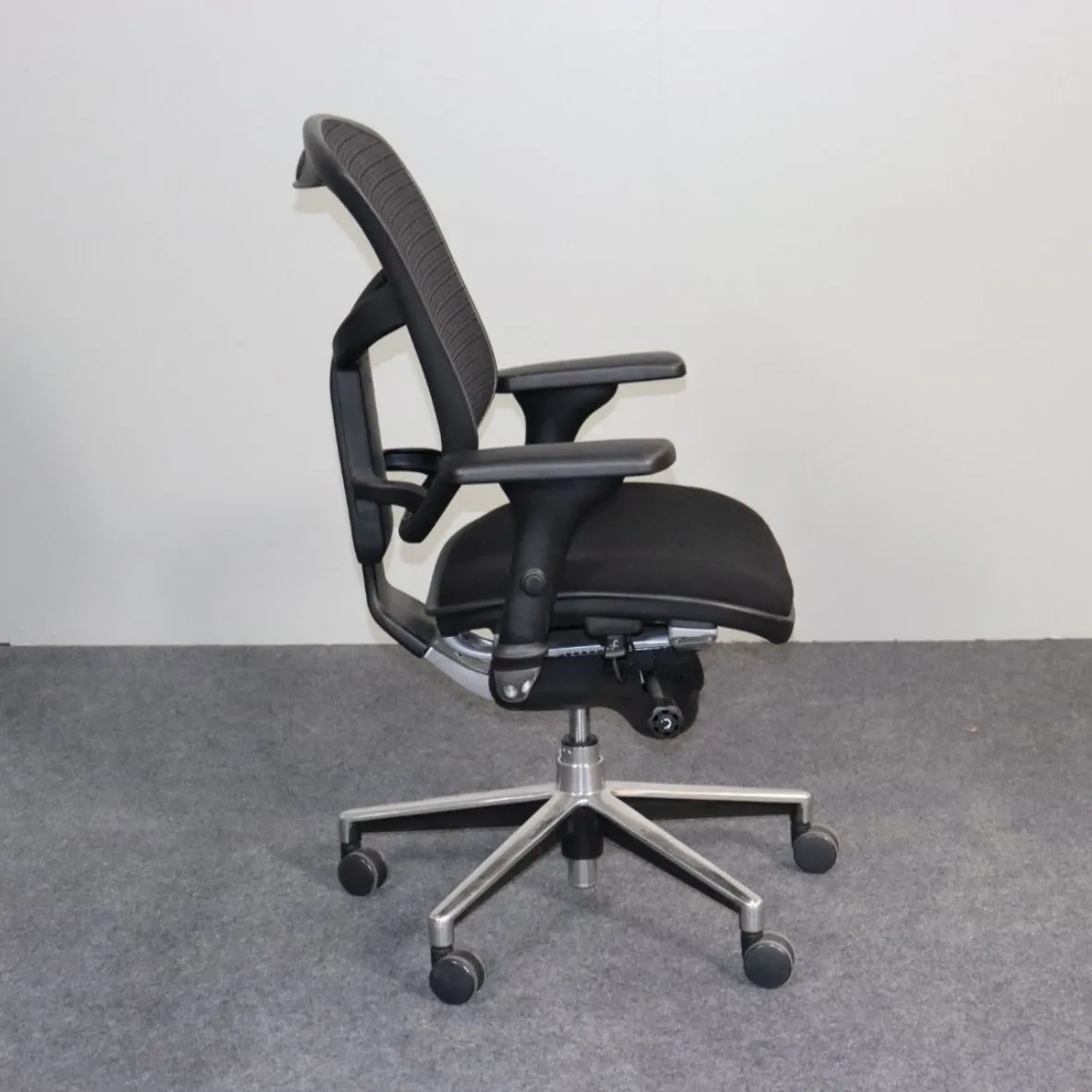 Ergohuman Enjoy työtuoli – käytetty musta Ergohuman Enjoy työtuoli verkkoselällä