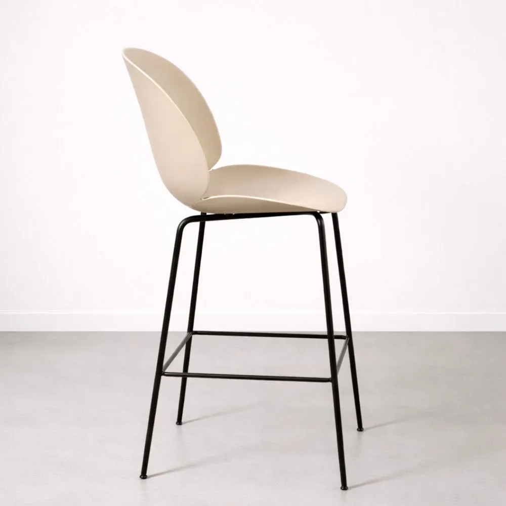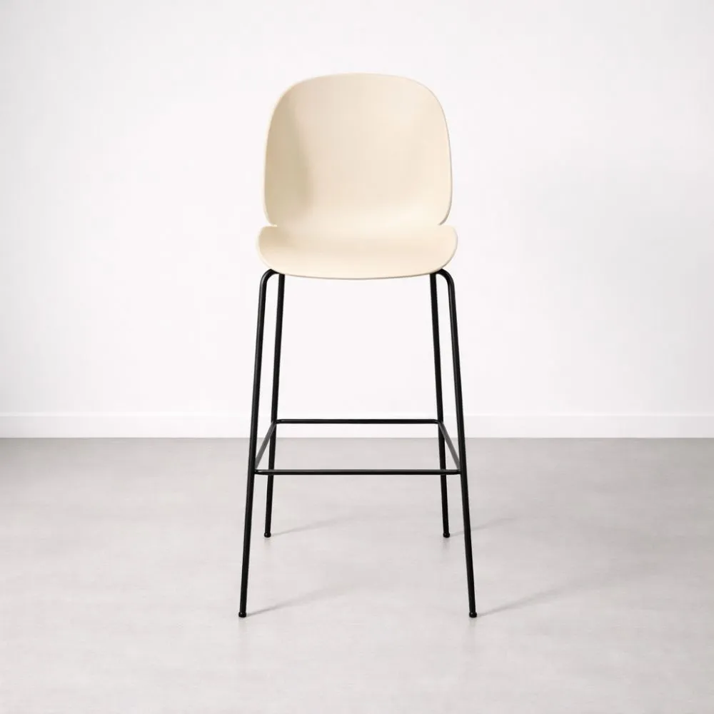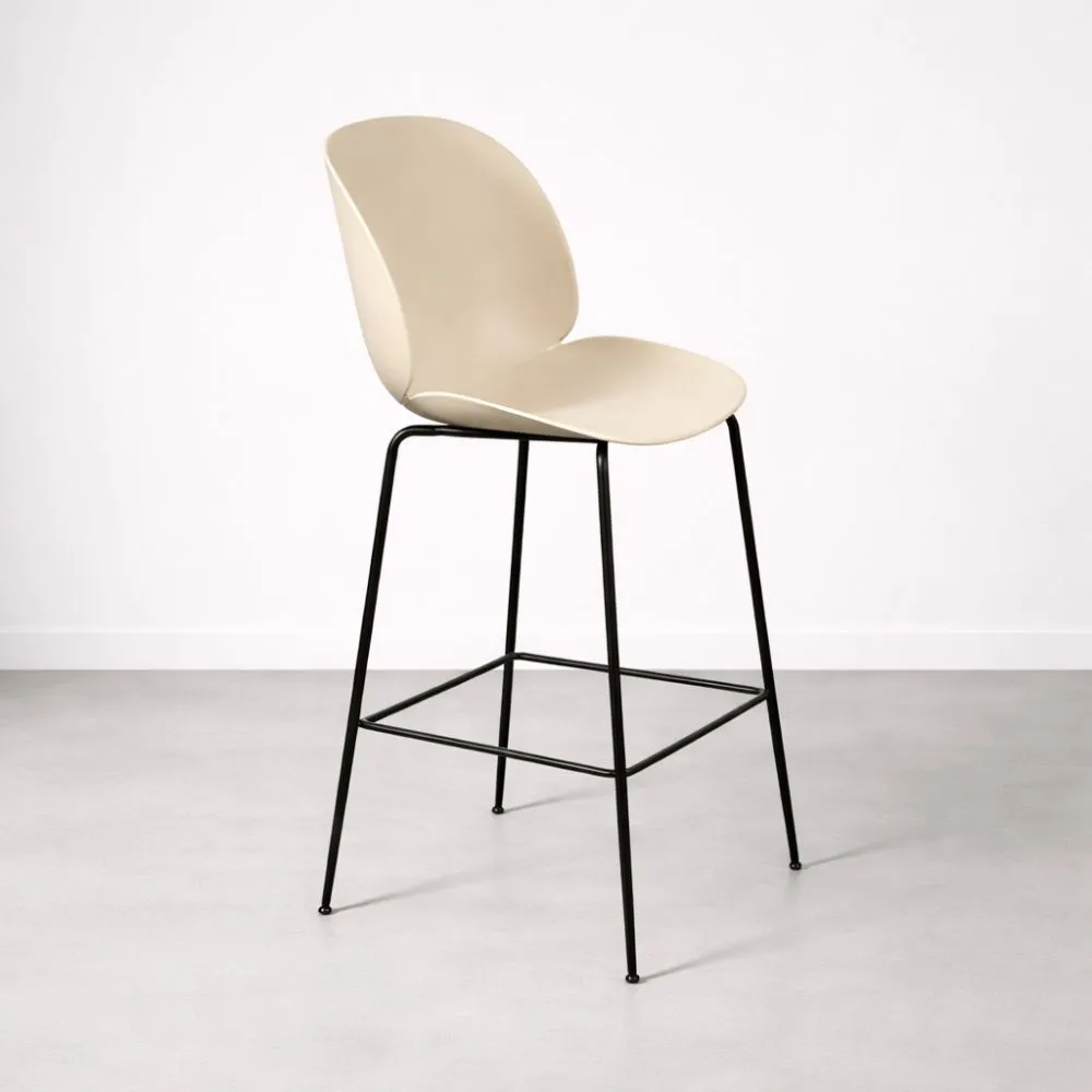Käytetty Gubi Beetle -baarijakkara – tyyikäs beige muotoiltu istuin, mustat teräsjalat