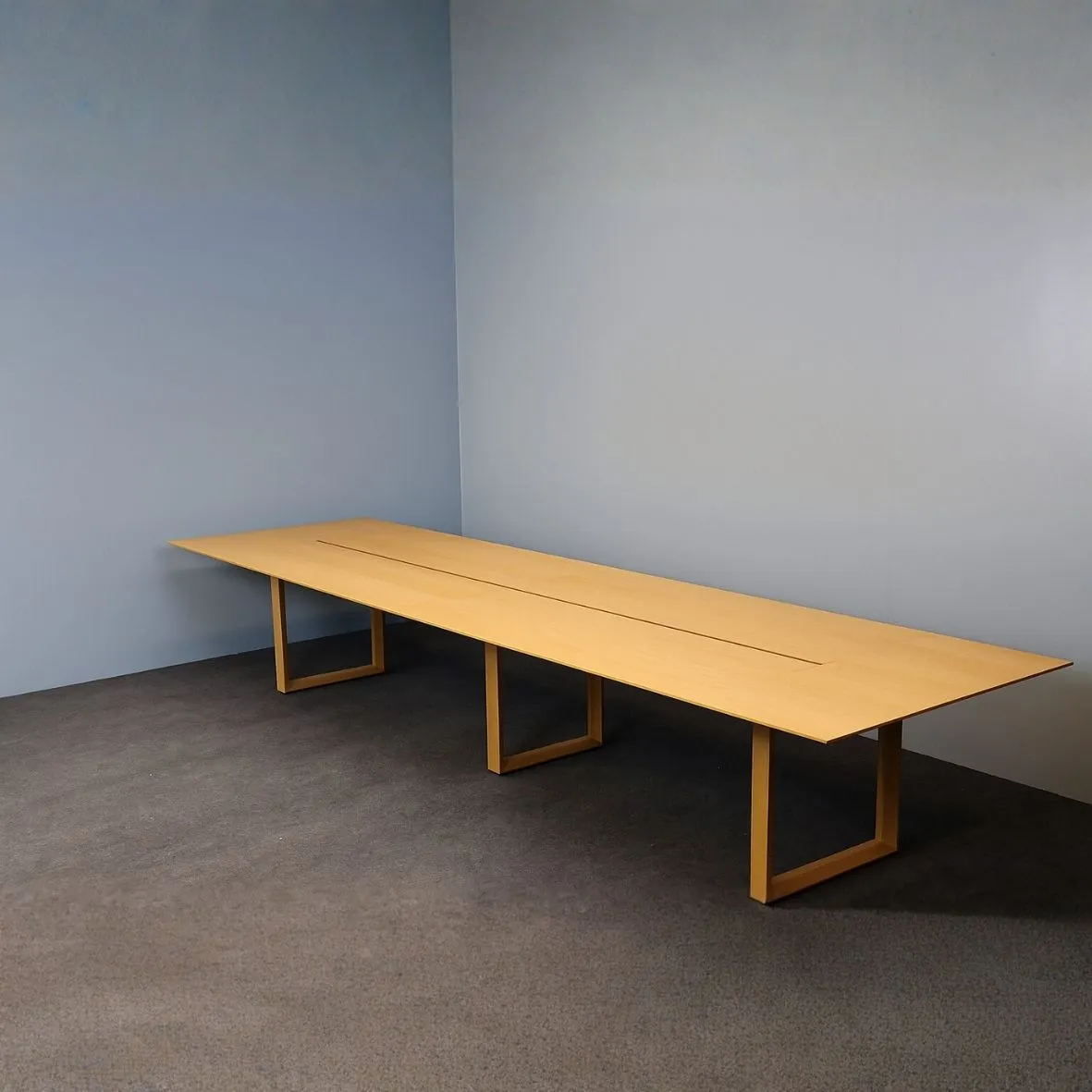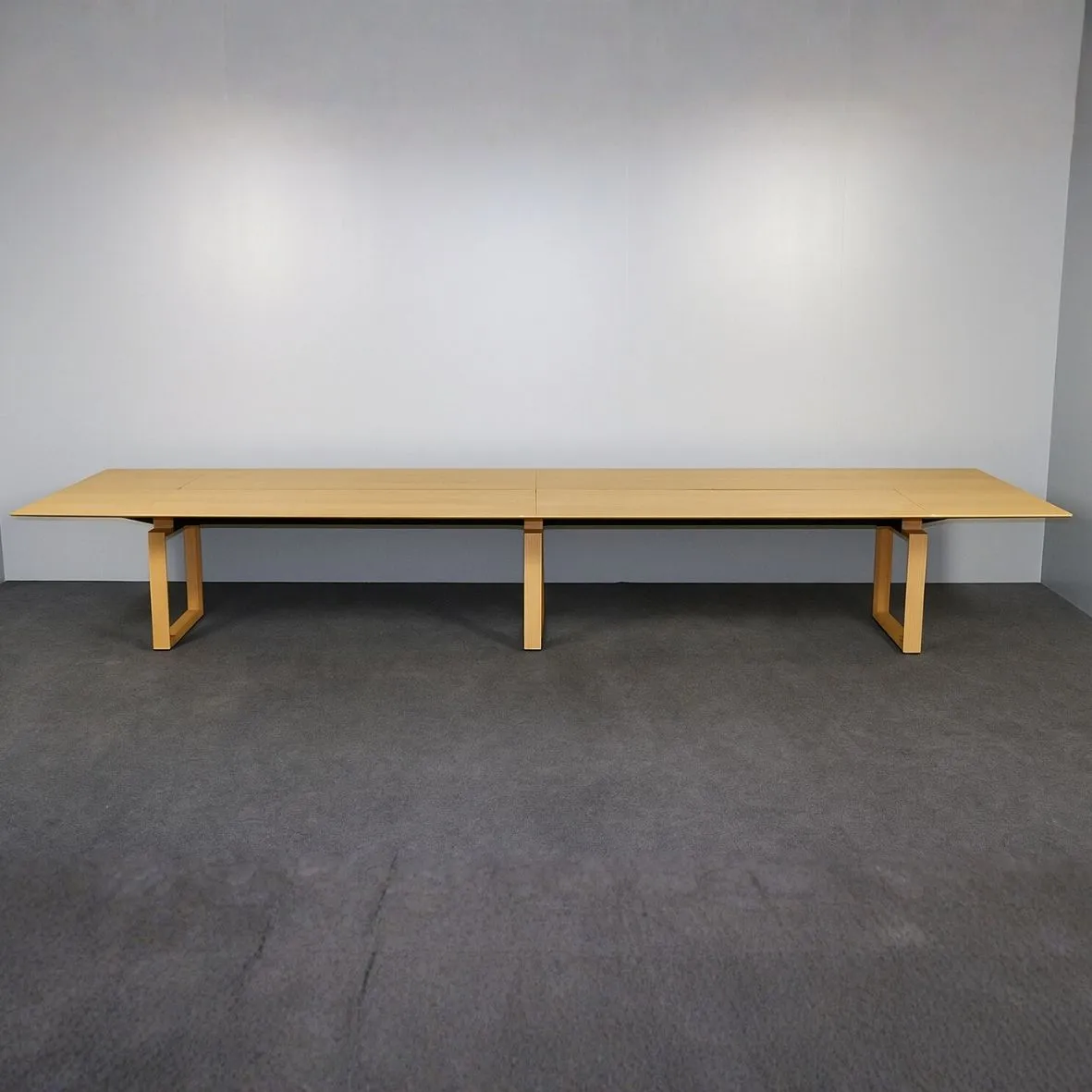 Tyylikäs ja tilava Inno neuvottelupöytä sopii vaativaan neuvottelukäyttöön. Tämä käytetty Inno neuvottelupöytä yhdistää laadukkaan muotoilun ja toiminnallisuuden. Massiivinen 480,5 cm pituus ja 12 pistokepaikkaa mahdollistavat sujuvan yhteistyön suurissakin kokouksissa. Ajaton tammiviilupinta ja siro runko tuovat tilaan luonnollista eleganssia.