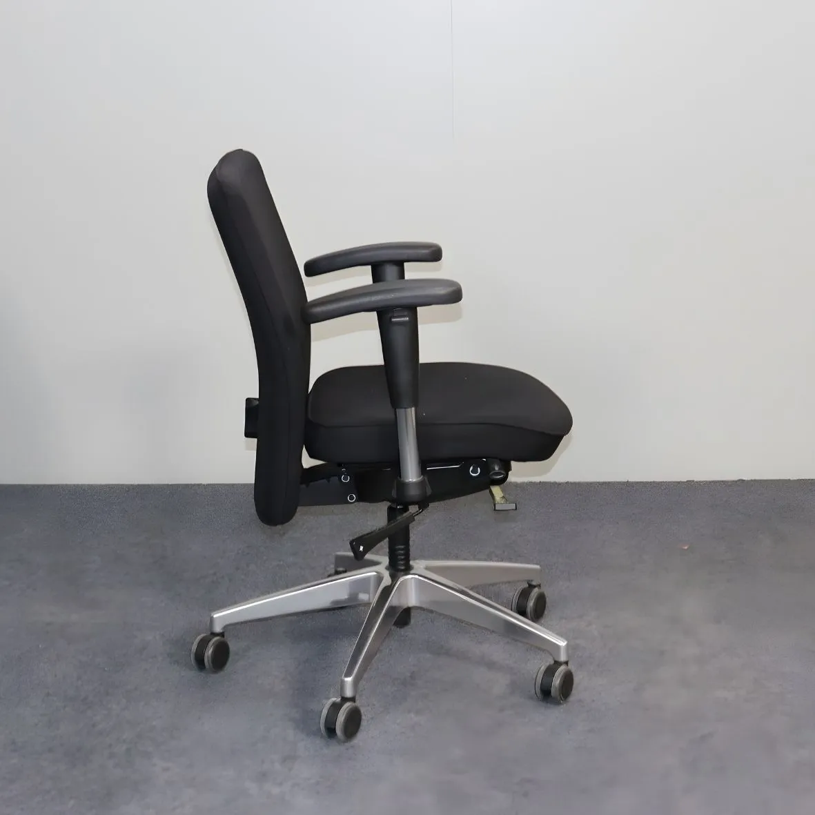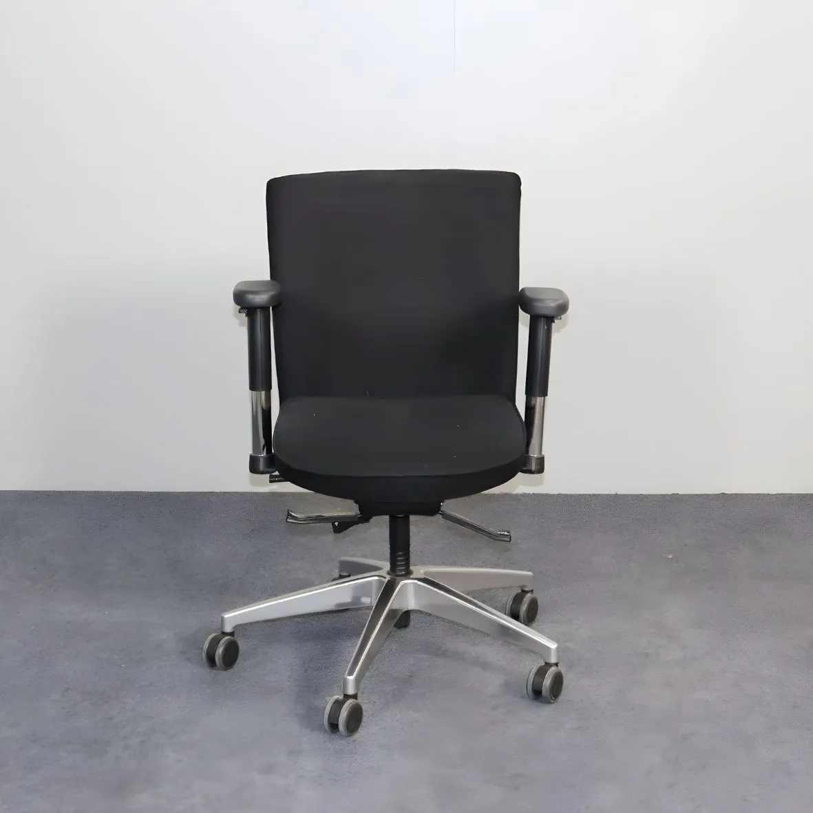 Interstuhl työtuoli – käytetty musta Interstuhl työtuoli säädettävillä käsinojilla