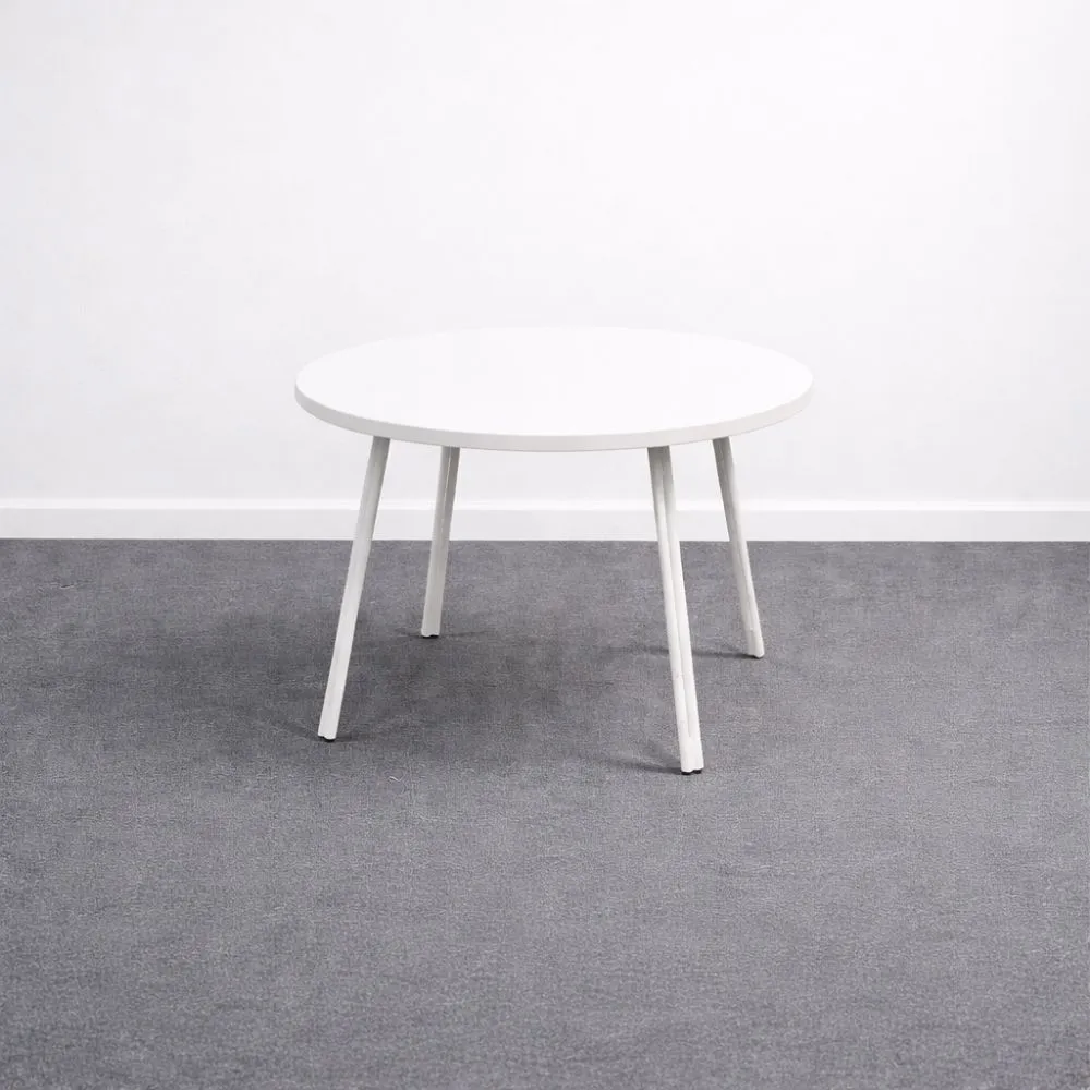 Isku sivupöytä halkaisijaltaan 90 cm on tilava mutta kevytlinjainen matala pöytä, joka soveltuu erityisesti lounge- ja oleskelualueille istuinryhmien yhteyteen. Tämä käytetty Isku sivupöytä on siistikuntoinen ja kauttaaltaan valkoinen.