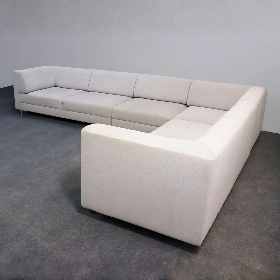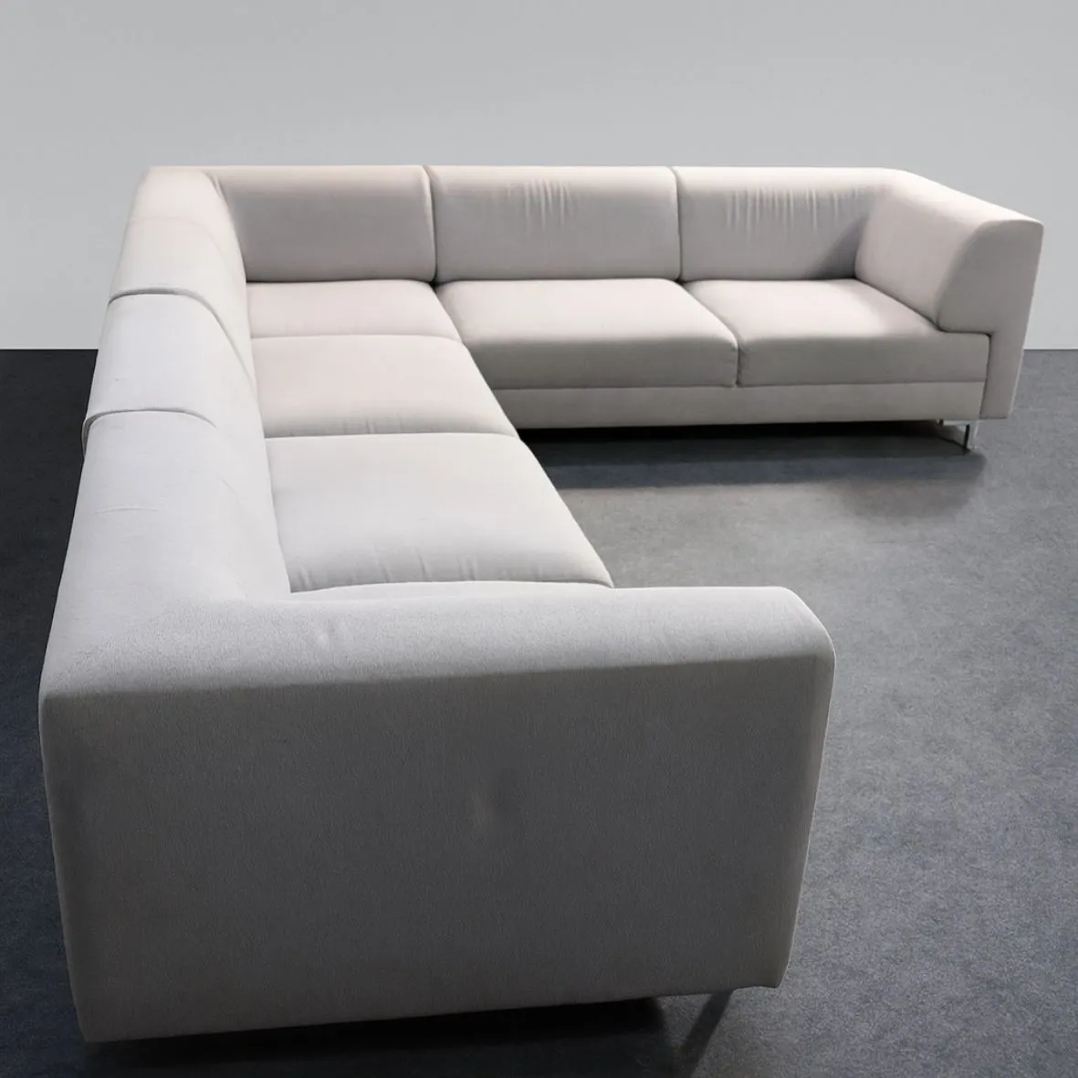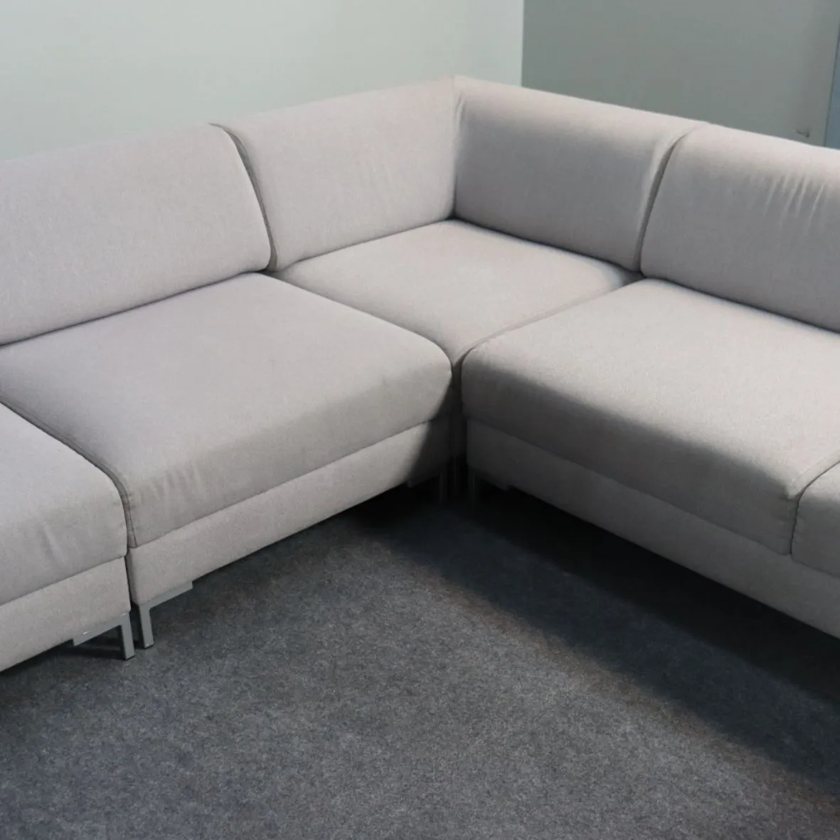 Harmaa kulmasohva 256x338 cm – Käytetty laatusohva toimisto- ja aulatiloihin