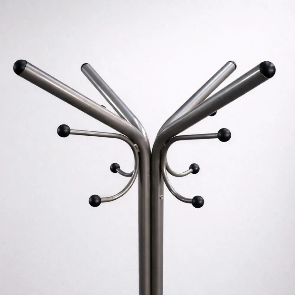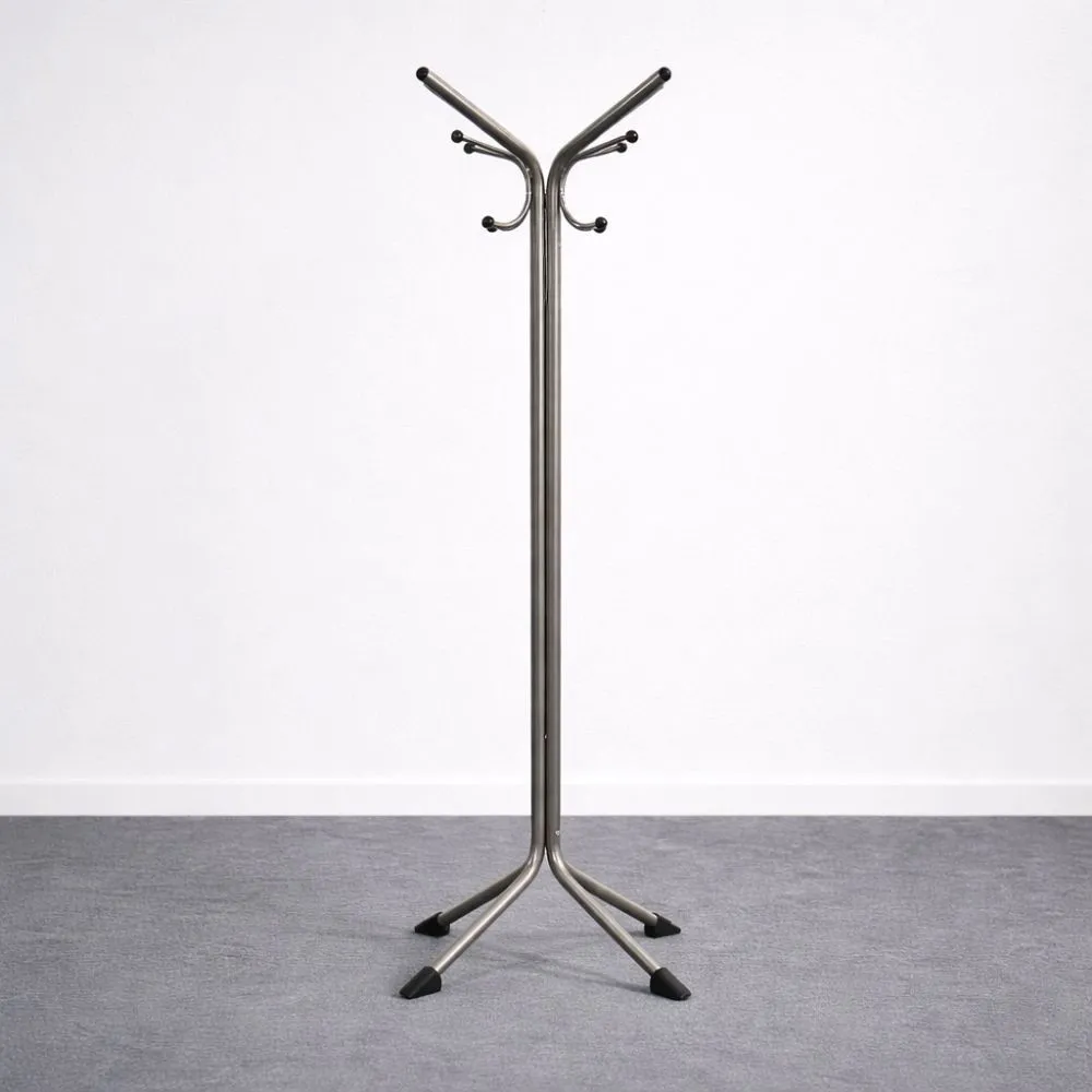 Lattianaulakko on selkeä ja kestävä ratkaisu takkien, laukkujen ja asusteiden säilytykseen toimistoissa ja yhteisissä tiloissa. Tämä käytetty lattianaulakko on siistikuntoinen ja valmistettu harmaasta metallista. Ajaton muotoilu ja vakaa rakenne tekevät siitä helpon yhdistää erilaisiin sisustuksiin.