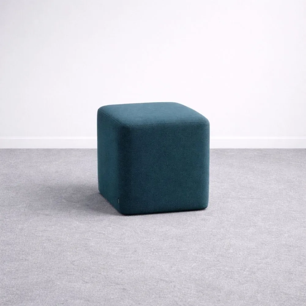 Käytetty Martela rahi 40×40×40 cm – syvän sinivihreä verhoiltu istuinrahi