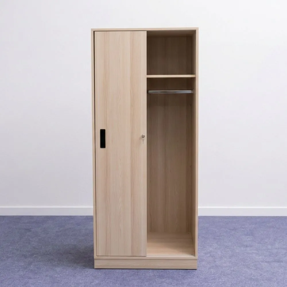 Narbutas vaatekaappi 186x80 cm on selkeälinjainen ja käytännöllinen säilytysratkaisu, joka tuo työympäristöön järjestystä ja rauhallista ilmettä. Vaalea puupinta tekee kokonaisuudesta helposti yhdisteltävän ja sopii luontevasti monenlaisiin toimisto-, tauko- ja säilytystiloihin. Tämä käytetty Narbutas vaatekaappi on siistikuntoinen valinta, kun tarvitaan toimivaa säilytystilaa takeille, vaatteille ja muille työarjen tavaroille.