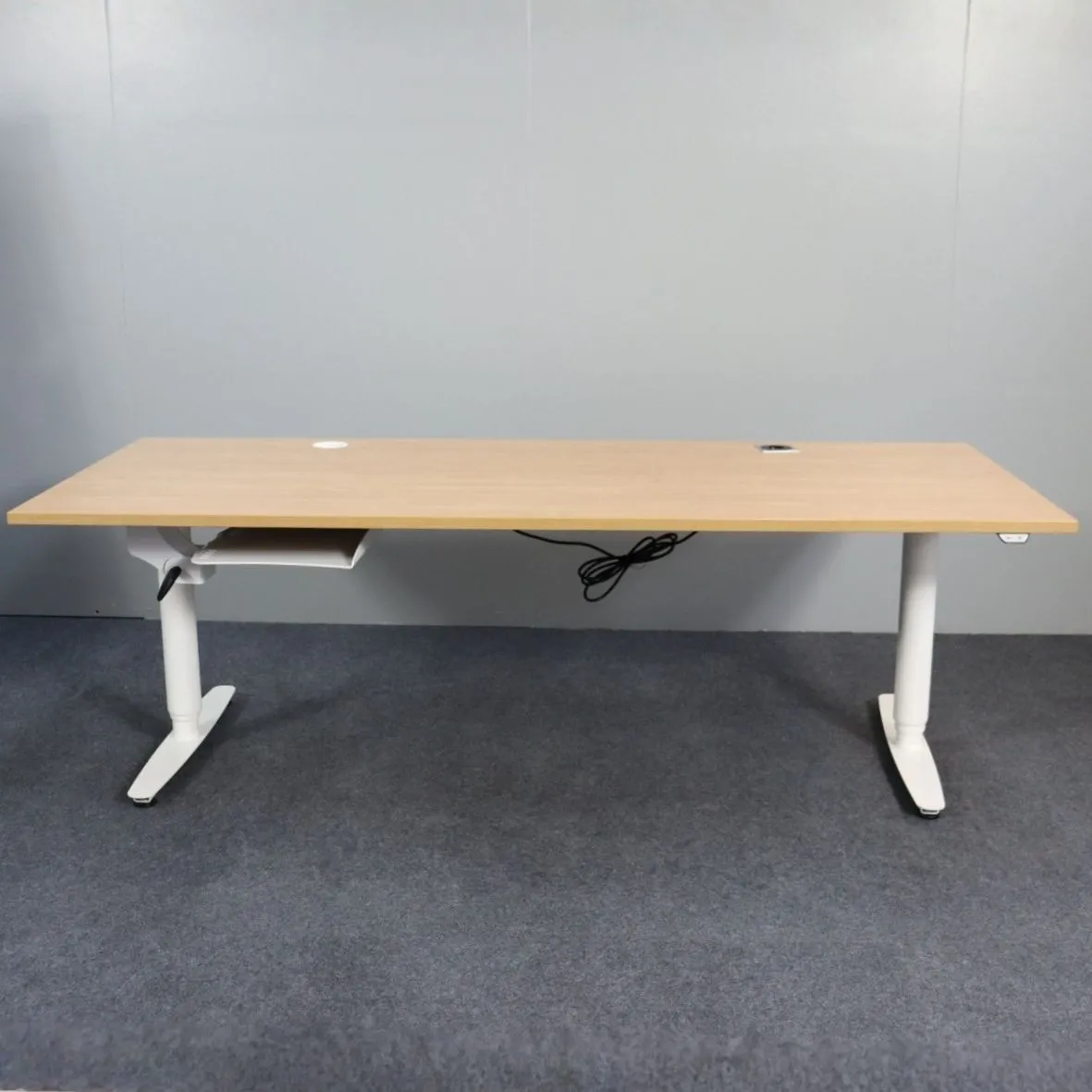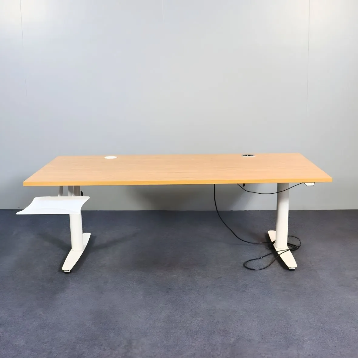 EFG sähköpöytä 210x90 cm on tilava, ergonominen ja monikäyttöinen valinta työpisteisiin, joissa arvostetaan säädettävyyttä ja toiminnallisuutta. Nyt käytettynä edullisesti – puunvärisellä kannella ja valkoisilla jaloilla. Käytetty EFG sähköpöytä 210x90 cm tarjoaa runsaasti työskentelytilaa ja mahdollisuuden säätää työskentelykorkeus itselle sopivaksi yhdellä napin painalluksella. Puunvärinen kansi tuo lämpöä sisustukseen, ja valkoiset jalat pitävät ilmeen kevyenä ja modernina. Johdoille on kätevät läpiviennit sekä pistokepaikka, jotka auttavat pitämään pöydän siistinä ja toimivana. Pöydässä on myös erillinen taso läppärille.
