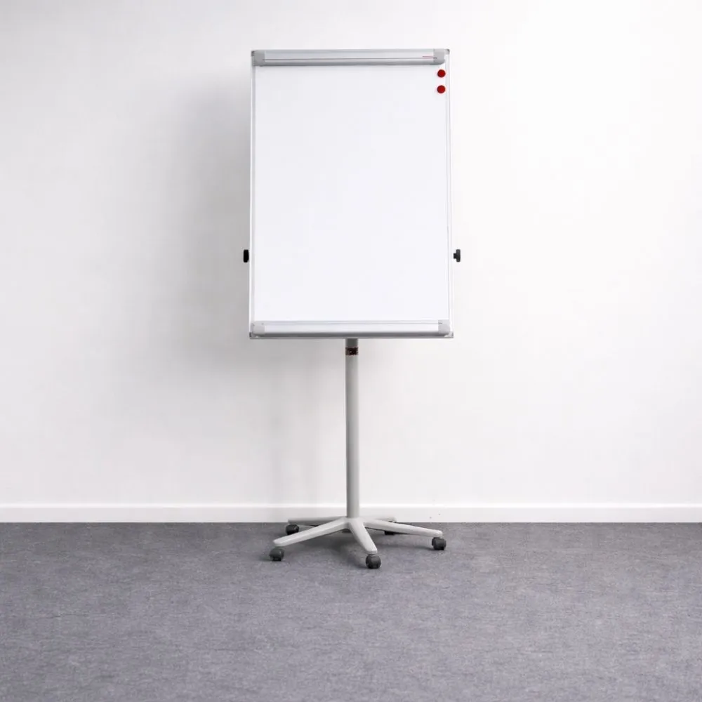 Tussitaulu / fläppitaulu on liikuteltava ja selkeä esityspinta kokouksiin, työpajoihin ja koulutuksiin. Se tukee sujuvaa ideointia ja viestintäää. Tämä käytetty tussitaulu / fläppitaulu on siistikuntoinen, vaaleanharmaa, ja varustettu manuaalisella korkeussäädöllä sekä pyörällisellä jalustalla.