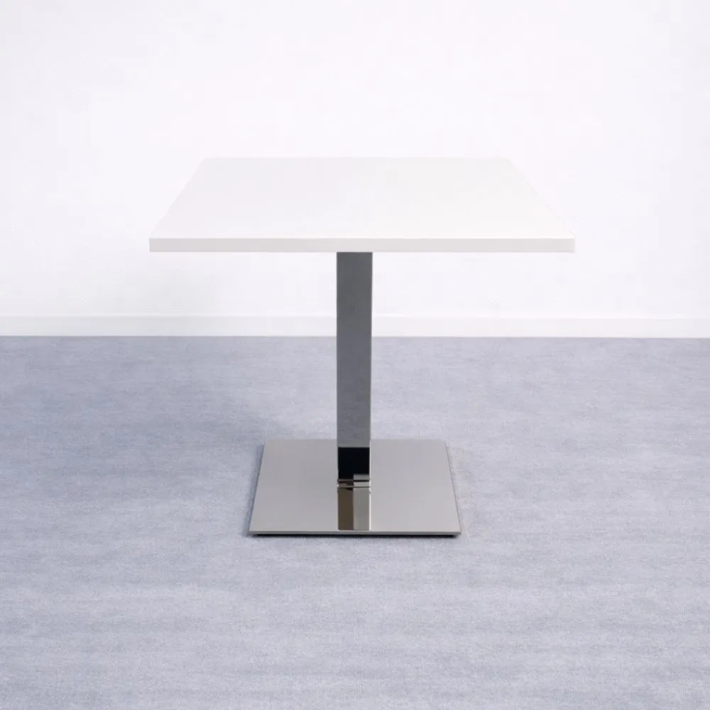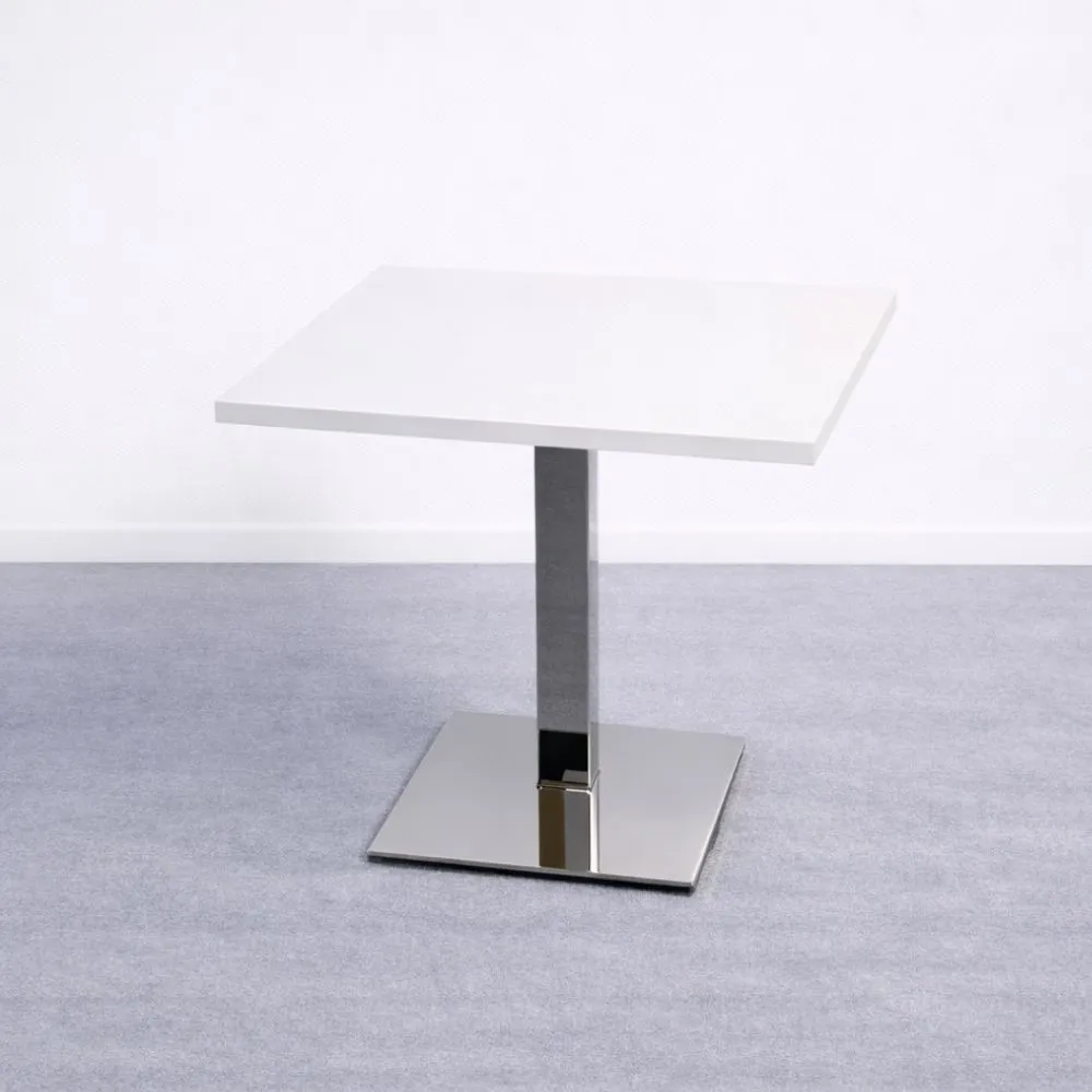 Pöytä 80 × 80 cm – valkoinen kansi, kromijalka