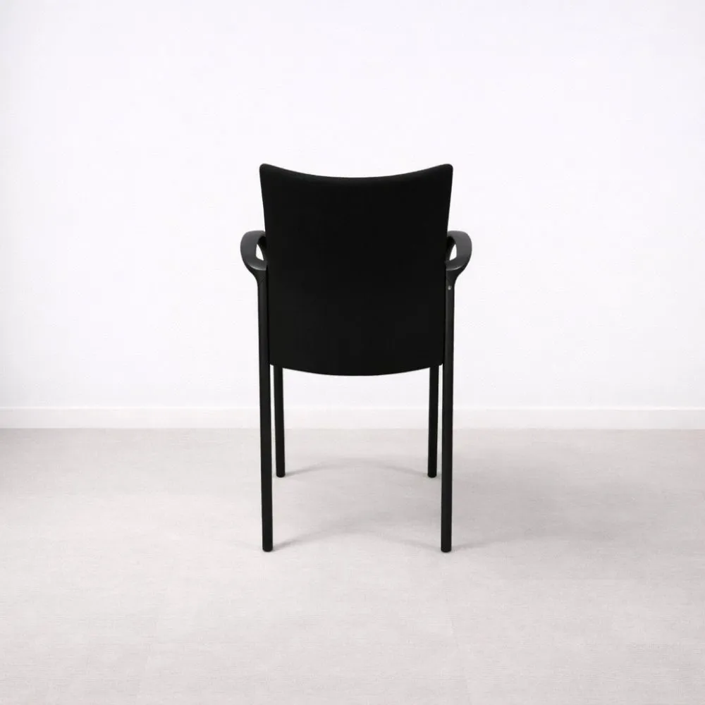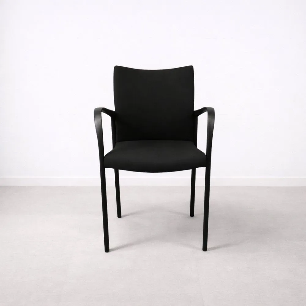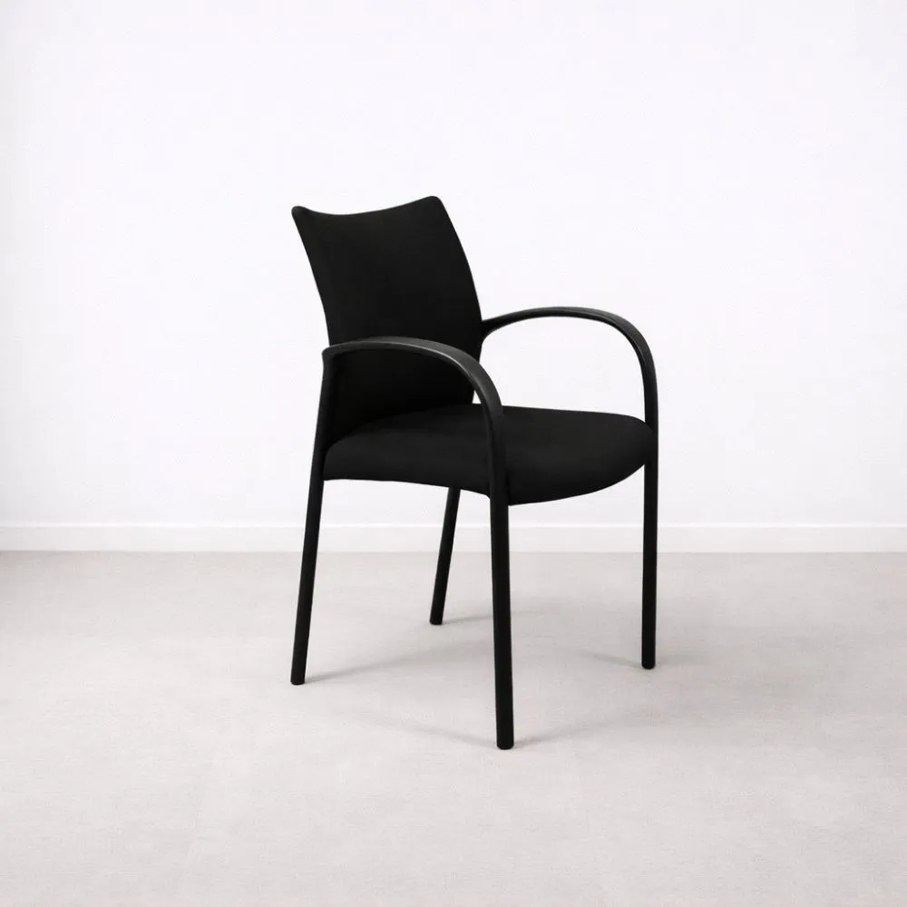 EFG yleistuoli on selkeälinjainen ja mukava istuin, joka sopii monipuolisesti neuvottelutiloihin, vastaanottoihin ja auloihin. Tämä käytetty yleistuoli on siistikuntoinen, mustalla verhoilulla ja metallirungolla varustettu sekä integroiduilla käsinojilla.